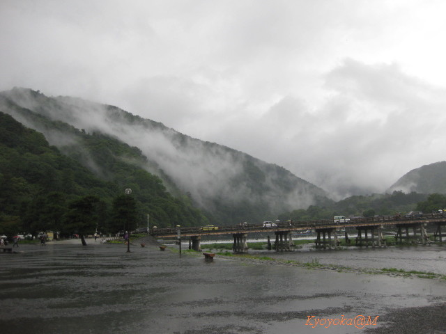 帰り道、豪雨でびっしょ濡れになりましたが、嵐山の渡月橋のあたりで、雨がいったん上がりました。