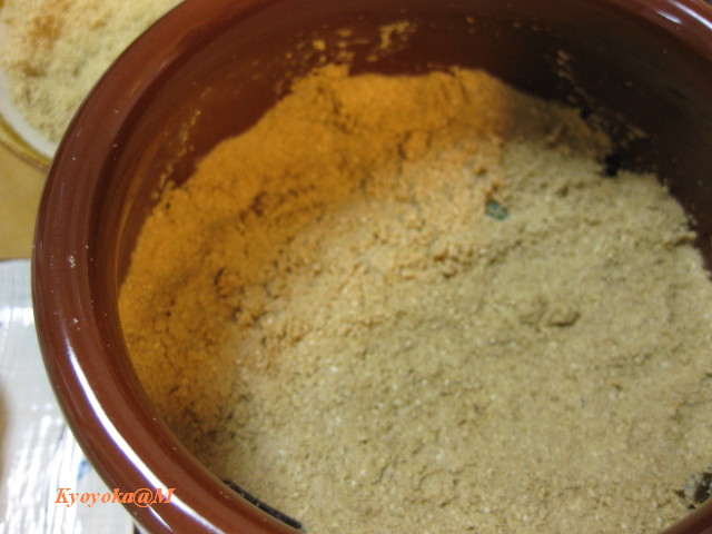 糠床は滋賀高島産のいきもの田んぼ米で作った米発酵エキスと三分に搗いた時の残りの糠で作りました。