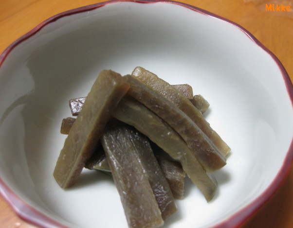 おすすめの金平にしました。(写真は作った翌日、冷蔵庫で保存していたものを撮影。出来上がった時はもっと白っぽい色をしていました)