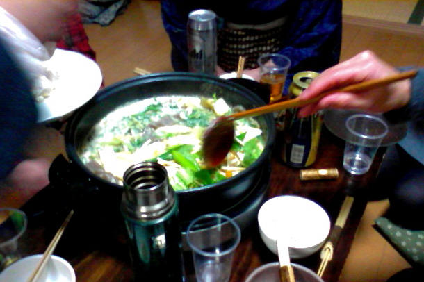 和気藹々で鍋をつつきあう図