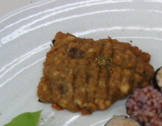 一口食べて驚きました。海苔の磯の香が食材を魚類に近づけ、かなり粘度の高い自然薯とこってりおいしいお豆腐と合わさって菜種油でからりと揚げると、あまくふんわりしたうなぎの風味と歯ごたえが出ていました。一瞬うなぎを食べた錯覚に陥りました。
