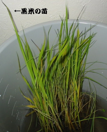 虹色米(古代米の赤・緑・黒の粳米ともち米それに今のお米で7種)の苗を
