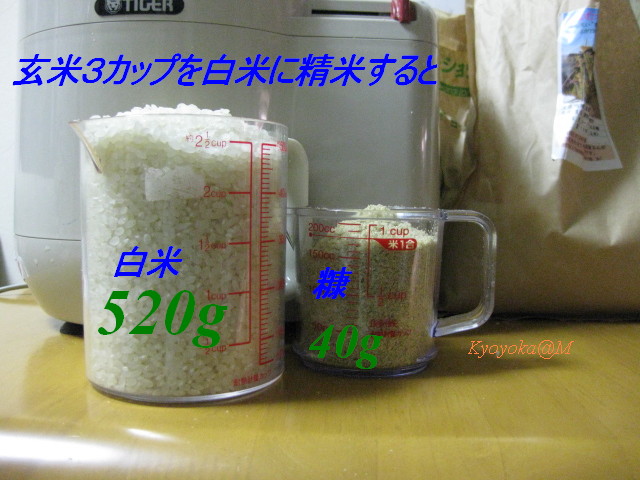 3分搗きの糠をみなれていると白米まで搗くと粉状になった米が非常に気になります。