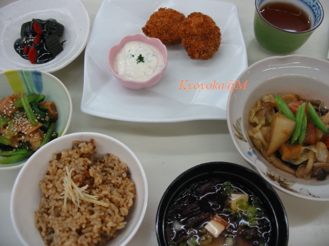 ごはんには根菜類とともにほろほろになるまで炒り煮したおからが使われています。
