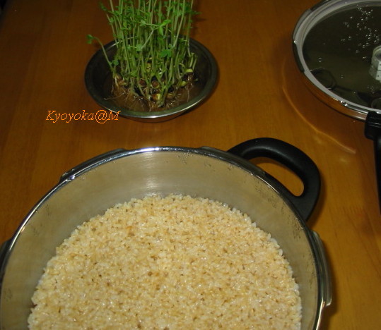 仕方がないので、お鍋で玄米を普通炊飯する要領で50分、炊きました。