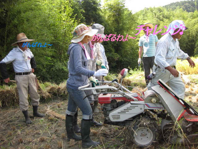 昨年一昨年の南丹市の田んぼよりも一ヶ月はやく植えて、1ヶ月はやく刈る作業。