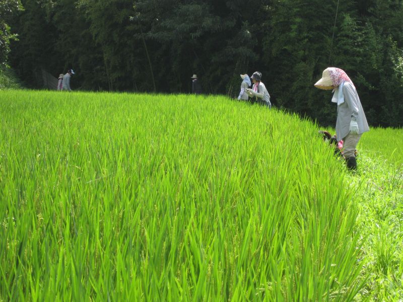 9月の稲刈り前の準備作業として(はざ掛け用の干し台に使う)竹を切りその運び出し作業。
